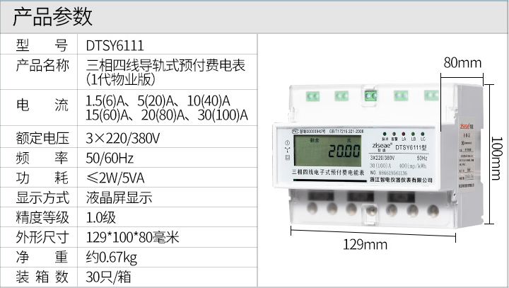 2.1 電能表規(guī)格: